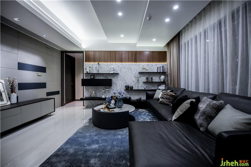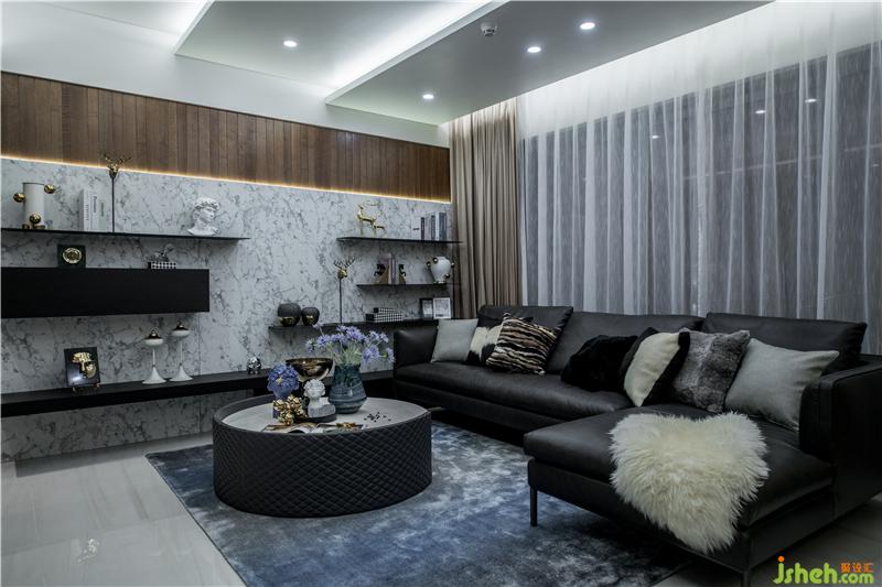 屋主人對(duì)客廳偏好意式簡(jiǎn)約,在設(shè)計(jì)之前就買(mǎi)了圖中的沙發(fā)。配合沙發(fā)風(fēng)格和主臥中式風(fēng)格,客廳設(shè)計(jì)更加簡(jiǎn)明,希望打造簡(jiǎn)約風(fēng)和水墨寫(xiě)意的感覺(jué)。