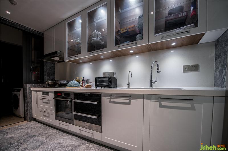 “一人巧作千人食,五味調(diào)和百味香?!?廚房使用了大理石大面積鋪陳,搭配燈光,營(yíng)造干脆簡(jiǎn)明的現(xiàn)代感??繅还竦拇蛟旄映浞值睦昧丝臻g,讓主人日后生活更加方便。