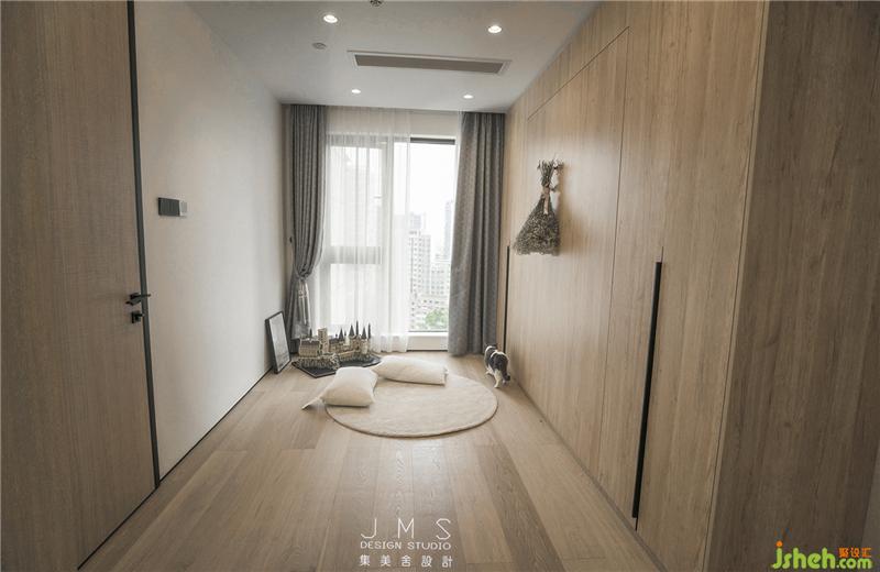 對于未來的小主人,設計師更多采用暖色調和極簡主義。為了給孩子更多的玩耍空間,設計師采用兒童房隱藏式折疊床。