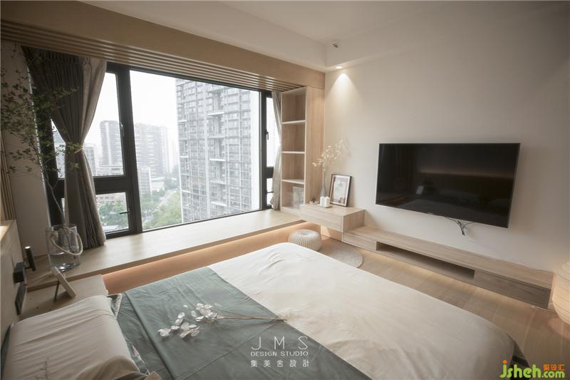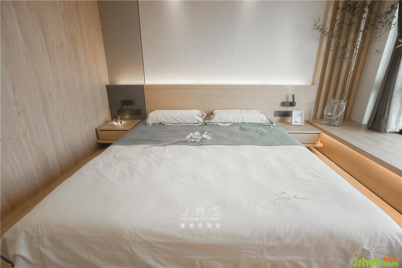 主臥為整體抬高設計,有效劃分空間的同時賦予空間層次感。掙脫鞋子的束縛,光腳踩在木地板上,心靈變得自由。臥室的家具柜子也均為低矮的設計,創(chuàng)造更多的空間,進而突顯人本身存在的意義。