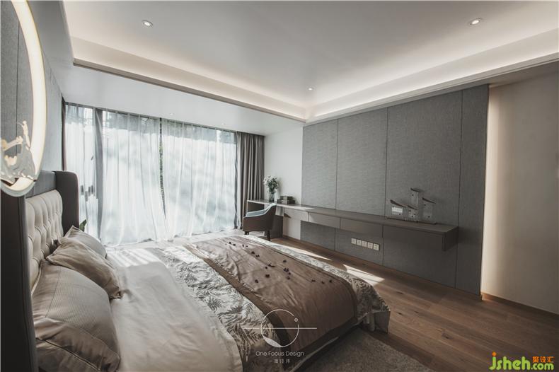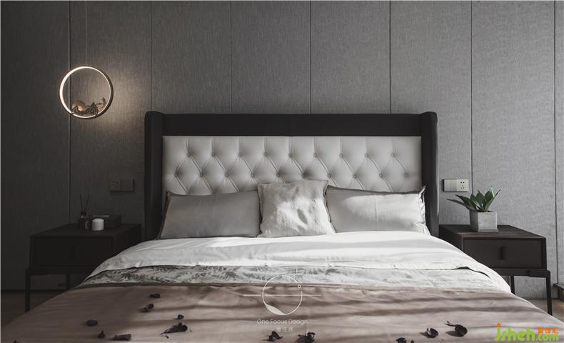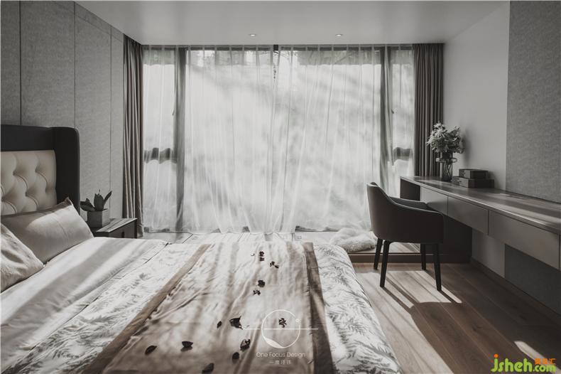 主臥的設(shè)計(jì)更表現(xiàn)了設(shè)計(jì)師手法的純熟和對生活的感知。主臥整體顏色偏灰,裝修設(shè)計(jì)風(fēng)格簡約在這樣寧靜的氛圍里主人能夠得到充分的休息。大大的落地窗則保證了白天的采光,光線透露窗簾,有一種別樣的溫柔。