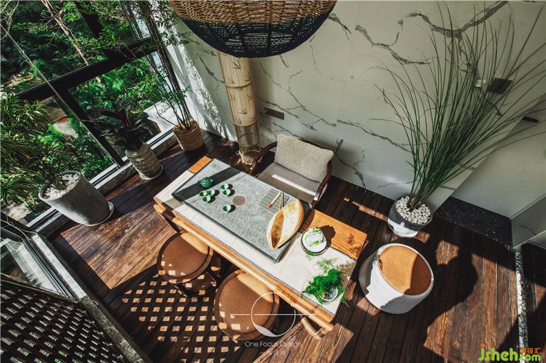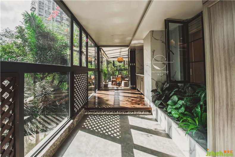 對(duì)于現(xiàn)代人來說,最能提升幸福感的莫過于一個(gè)大而美的陽臺(tái)。閑暇時(shí)眺望城市景色,是新的生活風(fēng)潮。設(shè)計(jì)師將原來空調(diào)井的部分用木地板覆蓋,連接起兩個(gè)陽臺(tái),創(chuàng)造了獨(dú)一無二的詩意棲居地
