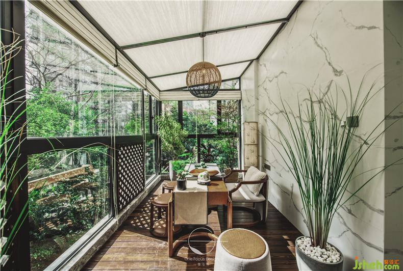對(duì)于精心設(shè)計(jì)的茶室,設(shè)計(jì)師也考慮到了其喜靜的特點(diǎn)。主人想要靜心品茶時(shí),只需將推拉門合上,這里就變成了一個(gè)風(fēng)景極具的茶室。
