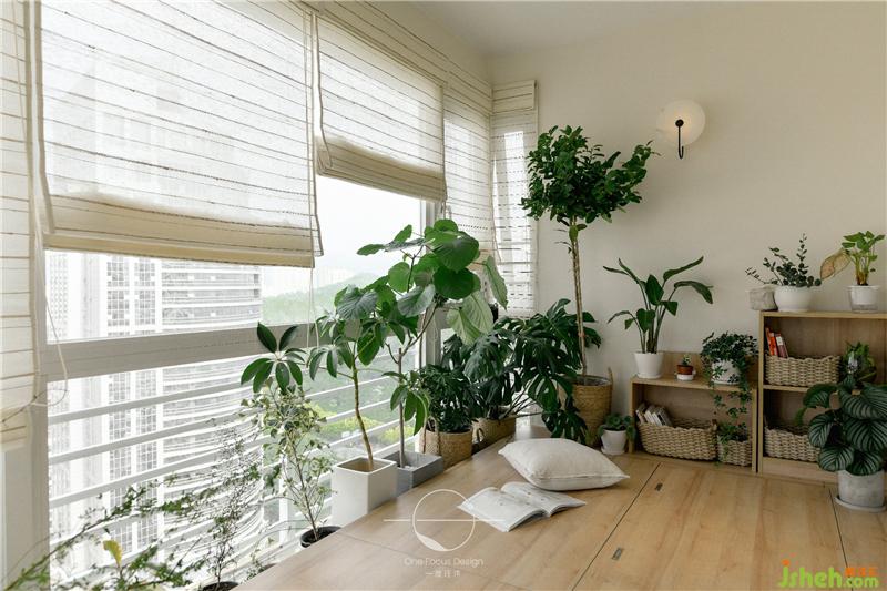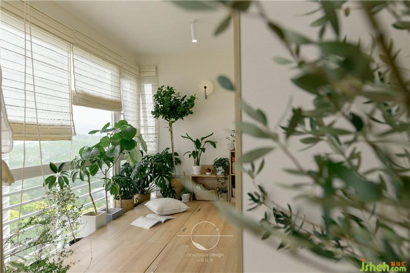 榻榻米的設(shè)計(jì)讓喜愛撫琴的居者隨時(shí)能席地而坐,彈奏一曲。種滿綠色植物的陽(yáng)臺(tái)搭配自然柔和的陽(yáng)光,禪意的氛圍撲面而來。