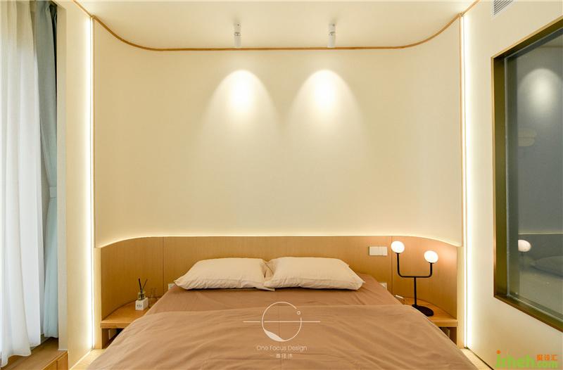 主臥與陽(yáng)臺(tái)相連,引景入室,紗簾和透明玻璃門若隱若現(xiàn)的阻隔讓空間氛圍變得自然而寧?kù)o,禪韻十足。臥室里內(nèi)嵌線條燈,在細(xì)節(jié)處勾勒出主人雅致的生活方式。