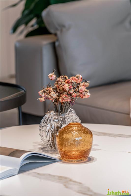 客廳飾品的無規(guī)則擺放,打破了原有的僵硬格局,讓沙發(fā)不再是作為區(qū)域分界線而存在。