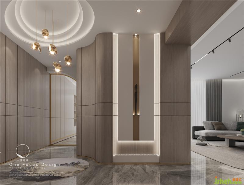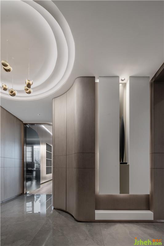 弧形的設(shè)計(jì)能在視覺上擴(kuò)大空間的范圍。利用弧形的設(shè)計(jì),在玄關(guān)處設(shè)置了內(nèi)嵌式換鞋凳鞋柜?;⌒蔚拈T洞設(shè)計(jì),就像是家與外界的隔絕。脫下在外的疲憊,換上家庭的輕松,享受家的愜意。