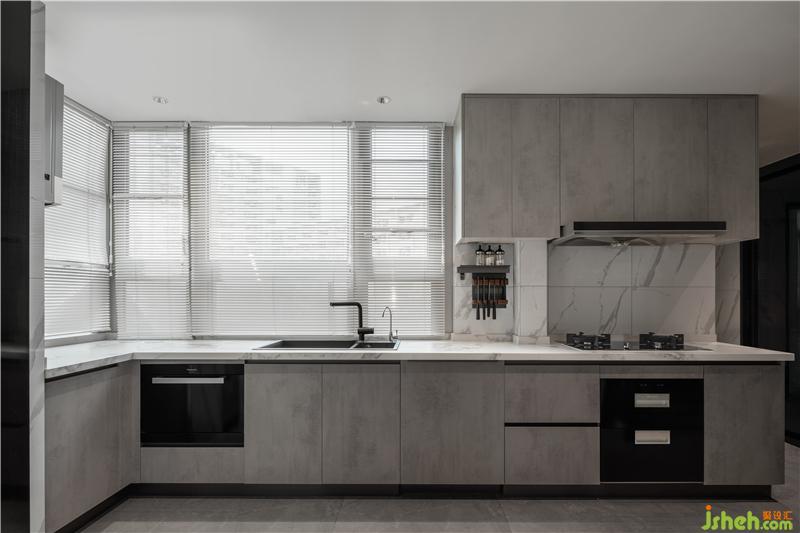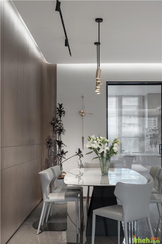 開放式的餐廚空間用內(nèi)嵌式玻璃門隔開,將生活的煙火潛藏,而此刻,玻璃不再是單一的表現(xiàn)形式,而是空間的存在與連接的關(guān)鍵。