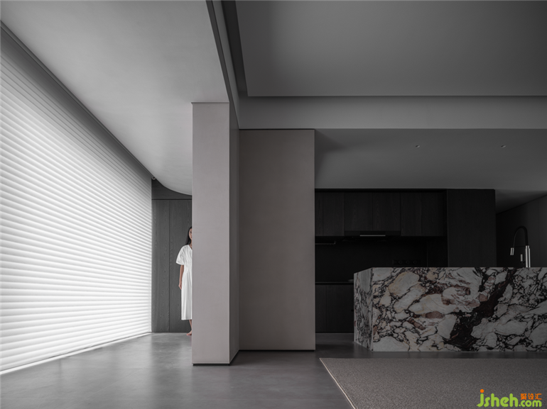 家是一面生活的鏡子,或是慌忙雜亂,或是安定沉靜,或是趨向物化,或是趨向精神。私宅設(shè)計(jì)空間會(huì)產(chǎn)生某種環(huán)境磁場(chǎng)而影響人的心緒,設(shè)計(jì)師幾乎將所有日常生活功能性都收納起來(lái),大面積的留白,使它呈現(xiàn)出一種簡(jiǎn)單清晰的確定性,以及一種想要閑下來(lái)做些什么的交互性,從而讓這個(gè)“家”產(chǎn)生一種放松得下來(lái)的安定感,以及某個(gè)時(shí)刻燃得起熱情的儀式感。