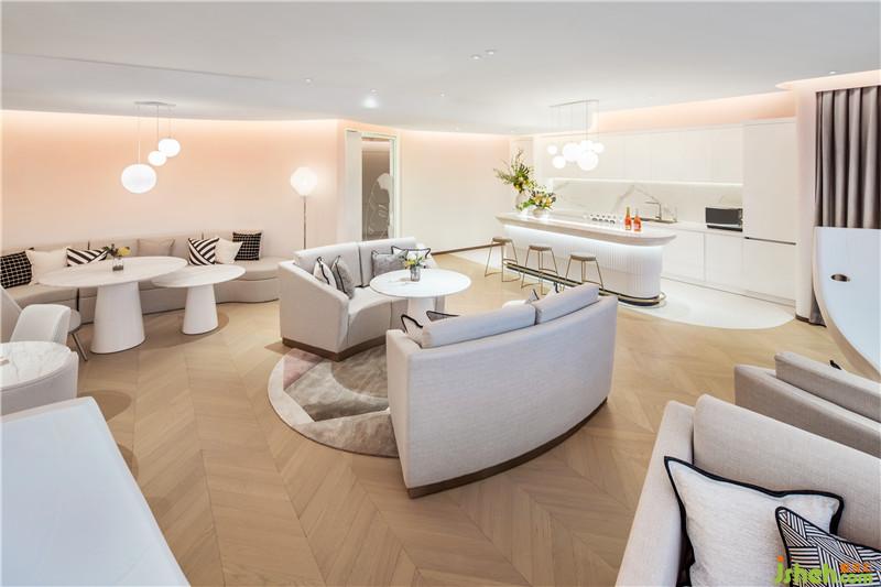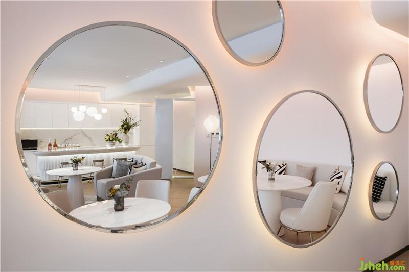 在入口處,花瓣造型與光源結(jié)合,朵朵繞蕊綻放,嬌美優(yōu)雅,展現(xiàn)簡約優(yōu)雅的美學(xué)定位。