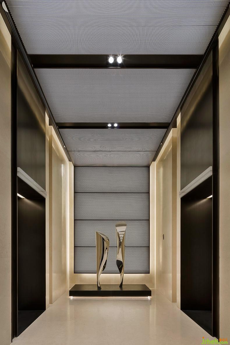 設(shè)計(jì)師在空間設(shè)計(jì)中并沒有刻畫或表現(xiàn)東方元素,但是項(xiàng)目巧妙地折射出了云淡風(fēng)輕的東方氣質(zhì),這或許來(lái)自木材、透光玉石、抽象油畫的搭配組合。