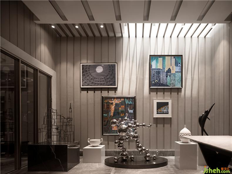 所以本案在設(shè)計(jì)中WED中熙設(shè)計(jì)還原了別墅主人豐富的精神世界,大量的藝術(shù)作品、別墅裝飾爵士音樂(lè)主題房間、剛剛傳入中國(guó)的網(wǎng)球運(yùn)動(dòng),以及豐富的收藏……