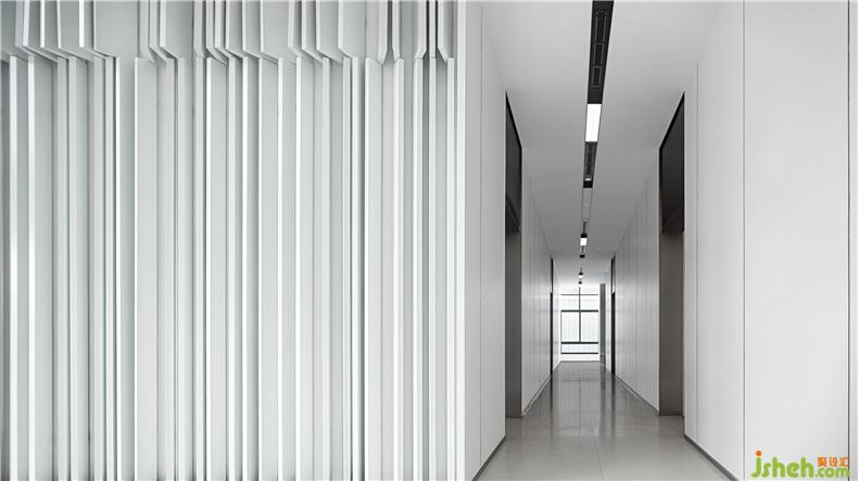 “我們看到使用者在這個空間中的兩種狀態(tài):一種是在干凈利索的背景下疾行來往的繁忙場景,辦公室設計另一種是陽光照到室內,立面隔斷在樓道地面投射出條形的光影效果,大家在開放區(qū)域輕松交談的場景,這就是建筑的力量。”