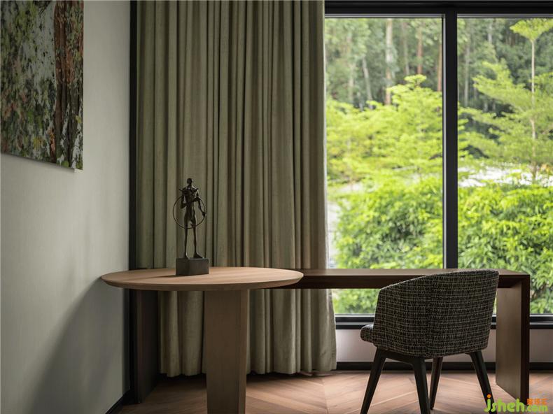 "We hope to encourage the owners to maximize the continuous interaction with nature as well as to pay attention to the quiet and comfortable rhythm, so as to realize the real urban travel", WED founder Simon added: "The open layout design and ancient Chinese "frame scenery" gardening technique build up a broad building exterior view, allowing the living room, tea room, bedroom and gym to enjoy unobstructed landscapes of the woods and mountains."