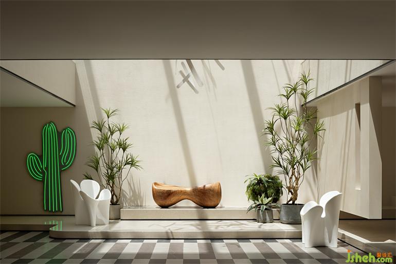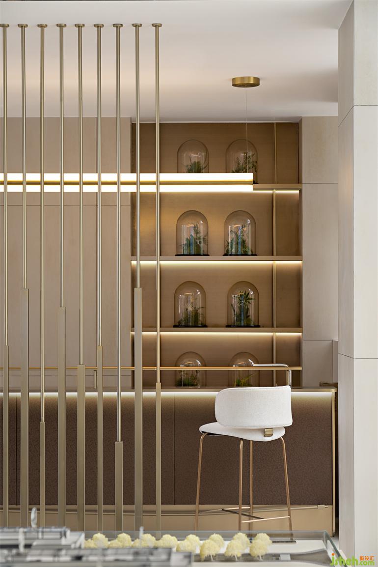 “夢(mèng)境”的有形存在藏身于幾何的遮擋中,柔和的燈光與樹(shù)枝擬態(tài)的造型讓夢(mèng)境的情景感更為真實(shí),生活美學(xué)館設(shè)計(jì)綠植造景超脫自然季節(jié)的限制與空間融為一體。