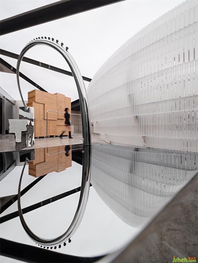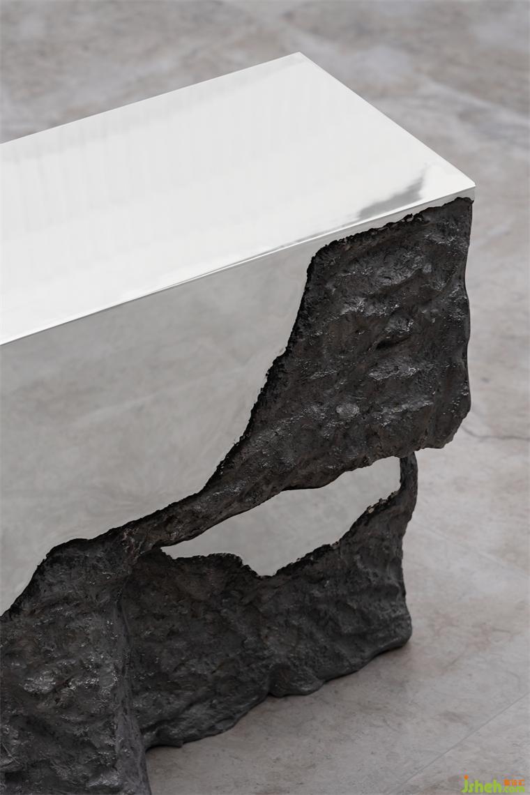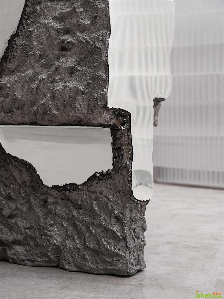 與此同時,金屬與石材相嵌的支撐架,改變了枯燥平淡的展示方式。亦如一個充盈著嶄新秩序的世界,包容、多面性在此集聚,在打破規(guī)章定義的同時,也令產(chǎn)品多了一種獨一無二的美。
