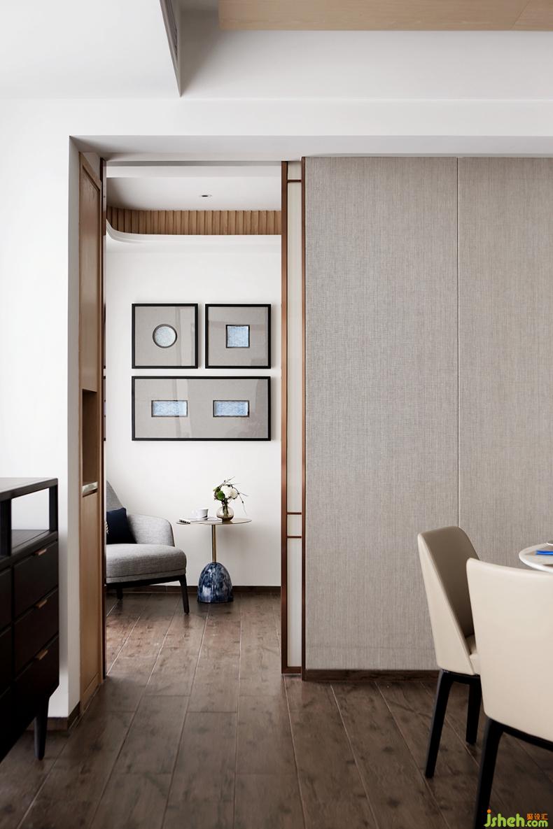 餐廳與休閑室的過(guò)渡,通過(guò)玻璃推拉門來(lái)實(shí)現(xiàn),既保證陽(yáng)光的充足,又能實(shí)現(xiàn)私密性。