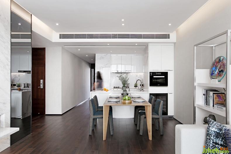 我們有意模糊各空間的界限,客廳作為空間樞紐區(qū)域,其軸動(dòng)線貫穿餐廳以及廚房,進(jìn)而創(chuàng)造一種趨于豐富且多元化的居家模式。深圳別墅裝飾空間簡(jiǎn)潔明凈,以白色為主基調(diào),溫和的淺灰色退居其次,結(jié)合白色大理石的自然紋理走向,讓空間背景兼顧美觀舒適的同時(shí),植入靜逸純粹的精神觀感。