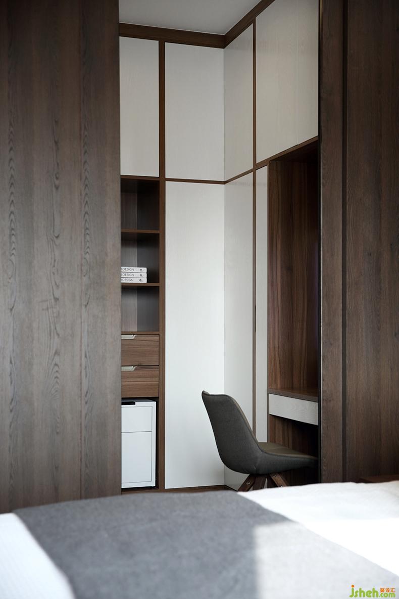主臥是最愜意閑適的地方,以穩(wěn)重雅致的胡桃木色作為房間的主色調(diào),與白色家具的交錯(cuò)更像是一幅幾何形塊的畫作,透過黑白關(guān)系,褪去張揚(yáng),優(yōu)雅而至。