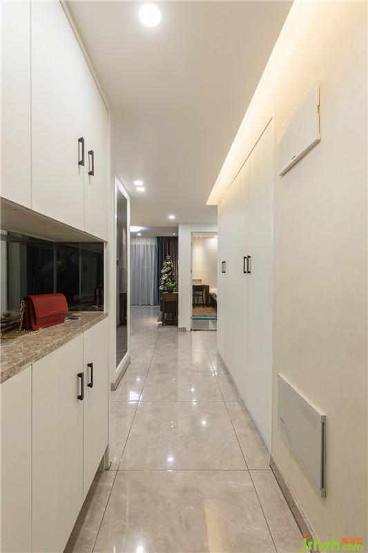 利用過道空間,小孩房衣柜朝外打開,增加了收納也方便了取用。冰箱側(cè)面和衣柜之間空間略顯逼仄,設(shè)計以鏡面,拉開了空間,儀容鏡恰到好處的出現(xiàn),讓生活日常更美麗。門把手選擇精致,讓簡單的過道提升了質(zhì)感。