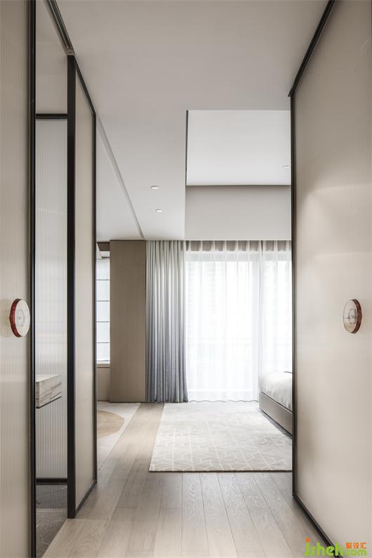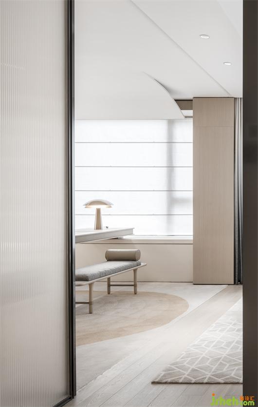 別墅二層定位為主人的私屬空間,貼合別墅坡頂設(shè)計(jì)的弧線天花,疊墅樣板房設(shè)計(jì)將臥室的最高點(diǎn)抬至 3500mm,在充分利用空間的同時(shí),優(yōu)雅地包攬了270°無(wú)敵視野的室外陽(yáng)臺(tái)所帶來(lái)的優(yōu)越景觀。自然光順著曲面的空間流入,將窗外花草、樹(shù)木、流水、清風(fēng)的影子帶入室內(nèi)。