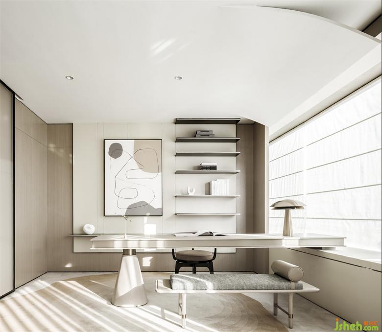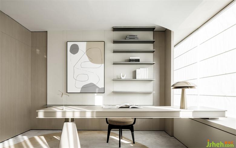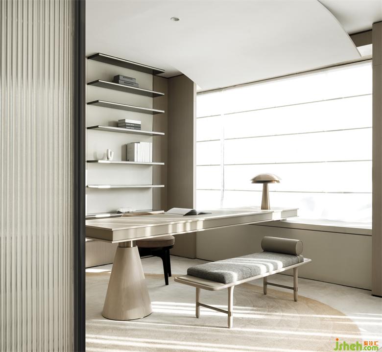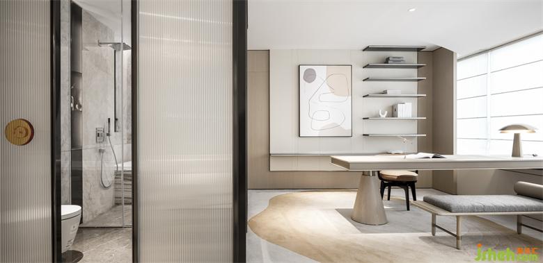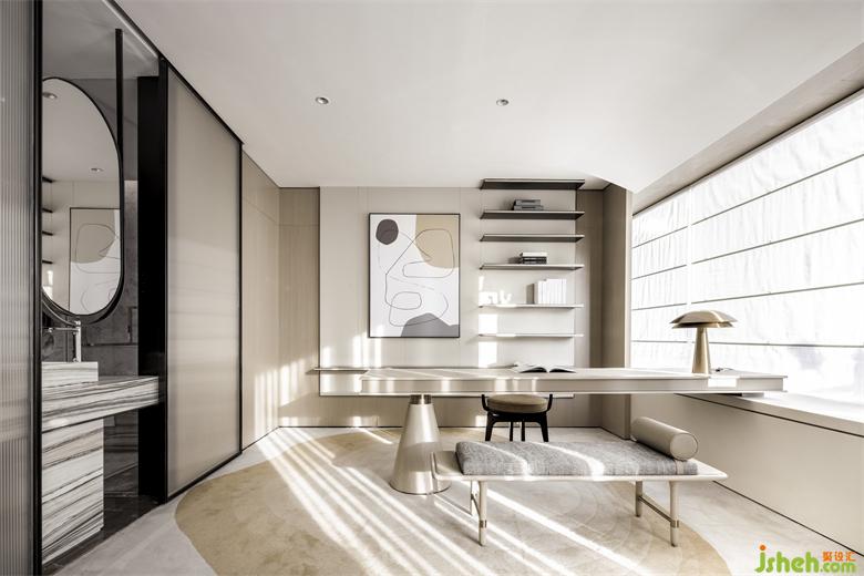 疊墅樣板房設(shè)計(jì)在這個(gè)空間中,一切體驗(yàn)感受都被放大。書(shū)房中 2700mm的超大工作臺(tái)面,豐富的陳列空間,8㎡ 開(kāi)放式布局的獨(dú)立衣帽間,主臥、主衛(wèi)、衣帽間和書(shū)房之間,都有著自由而靈活的隔斷。
