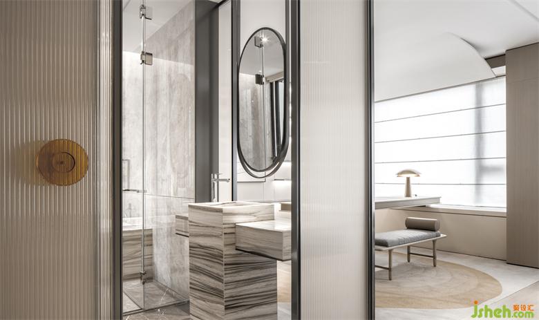 半透明的長(zhǎng)虹玻璃隔墻使空間邊界模糊,擺脫傳統(tǒng)的以隔墻來(lái)控制布局的模式,疊墅樣板房設(shè)計(jì)使空間靈活多變,在保證私密性的同時(shí),使空間更具動(dòng)態(tài)與實(shí)用性。