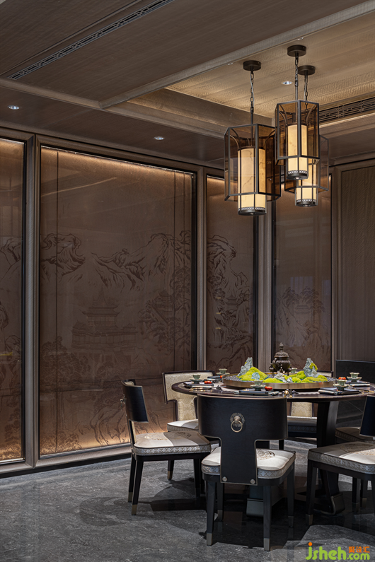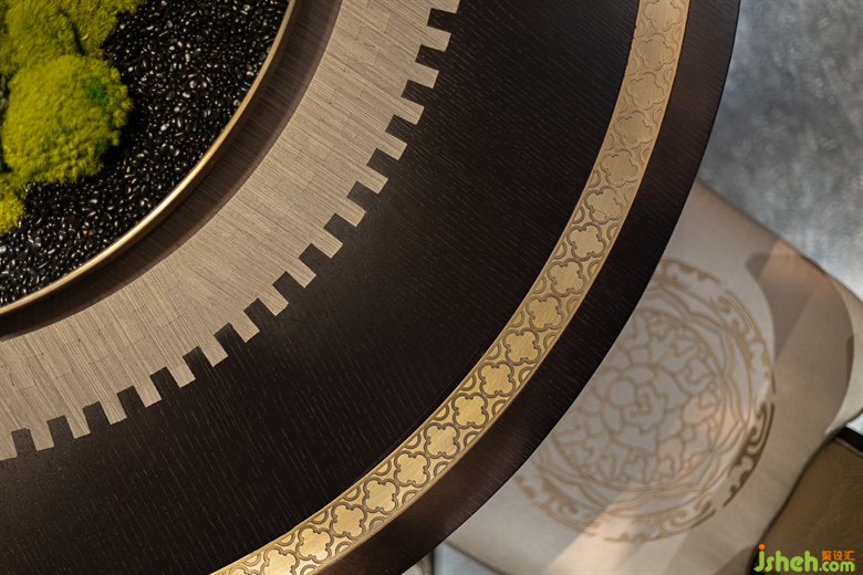 山水相逢,芙蓉入織。經(jīng)過再設(shè)計(jì)的芙蓉定制紋樣嵌入了沙發(fā)座椅的暖黃色的絲光面料中,別墅樣板房設(shè)計(jì)也鑲刻在了沉郁古樸的木制家具五金細(xì)部中。如同氣勢萬千的國畫中,加入一些恰當(dāng)?shù)慕鈽?gòu)手法,讓畫風(fēng)更具有辨識度。派尚設(shè)計(jì)細(xì)膩入微的陳設(shè)藝術(shù)讓整個項(xiàng)目更具辨識度和儀式感,形式簡潔純粹、色調(diào)溫暖,詩性生動而靈韻萬千。