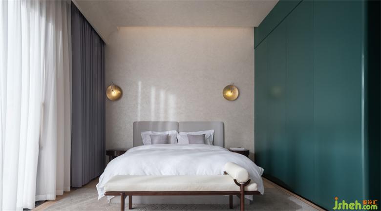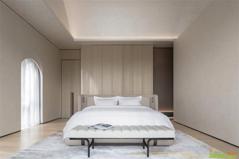 原建筑巨大的歐式玻璃窗橫跨幾個樓層且無法改動,設(shè)計(jì)師巧妙通過重塑空間立面的形體來增加幾何構(gòu)成美感并優(yōu)化比例,優(yōu)化后的空間布局也將整個小院最佳的露臺景觀留給了民宿設(shè)計(jì)床的對位。