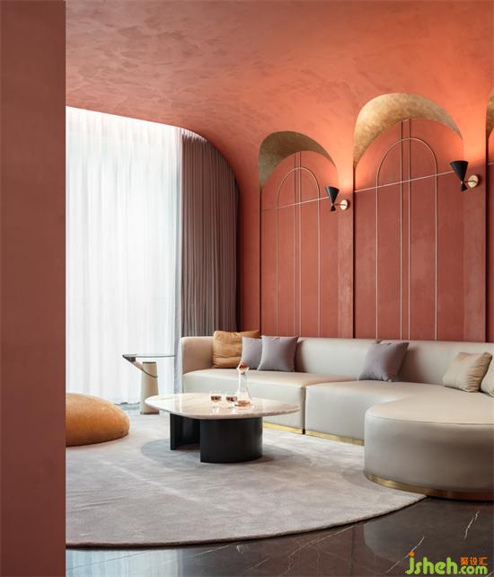 負(fù)一層除了擁有會(huì)議室、報(bào)告廳、多功能影音室外,也預(yù)留了紅酒雪茄品鑒區(qū)。作為整個(gè)小院配色最為濃重的空間,民宿設(shè)計(jì)師希望將紅酒的芬芳馥郁和迷人色調(diào)注入到空間中,因?yàn)橐曈X可以給人的味覺、嗅覺帶來更深度的體驗(yàn)。