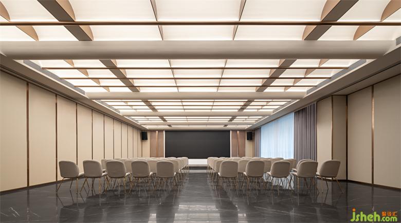 會(huì)議報(bào)告大廳簡潔明快,民宿設(shè)計(jì)天花也延續(xù)了整個(gè)東家小院的序列感微穹頂結(jié)構(gòu)。照明系統(tǒng)柔和而有氛圍感。