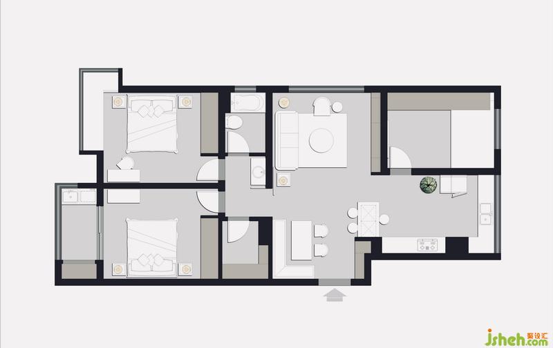 衛(wèi)生間洗臉區(qū),大部分時(shí)間為兩人居住,所以主衛(wèi)被改造為儲(chǔ)藏間,在只保留一個(gè)衛(wèi)生間的情況下,改為干濕分離,增加實(shí)用性。