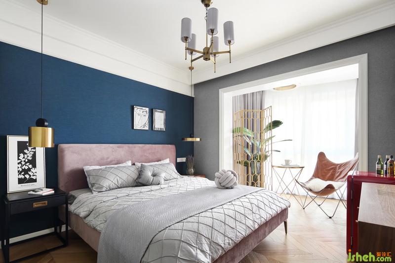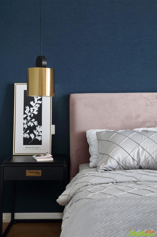 灰粉色和墨藍(lán)色搭配出適合休憩的空間,同時(shí)又不失時(shí)尚感。
