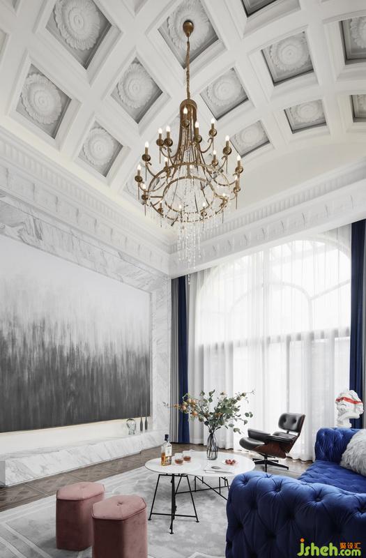 結構方面改動頗少,而在軟裝方面重點著墨。客廳穹頂靈感來源于羅馬教堂,取其形舍其式,呈現出一種典雅的秩序美。