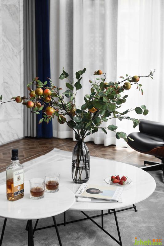 在材質方面我們用到了墻布、大理石和地磚等,在保證美觀的同時,滿足生活的實用和舒適。客廳的主墻面,大理石走邊,中間選用抽象麥穗定制墻布,配以休閑帶質感的家具,讓整個空間散發(fā)出一股濃濃的藝術氣息。