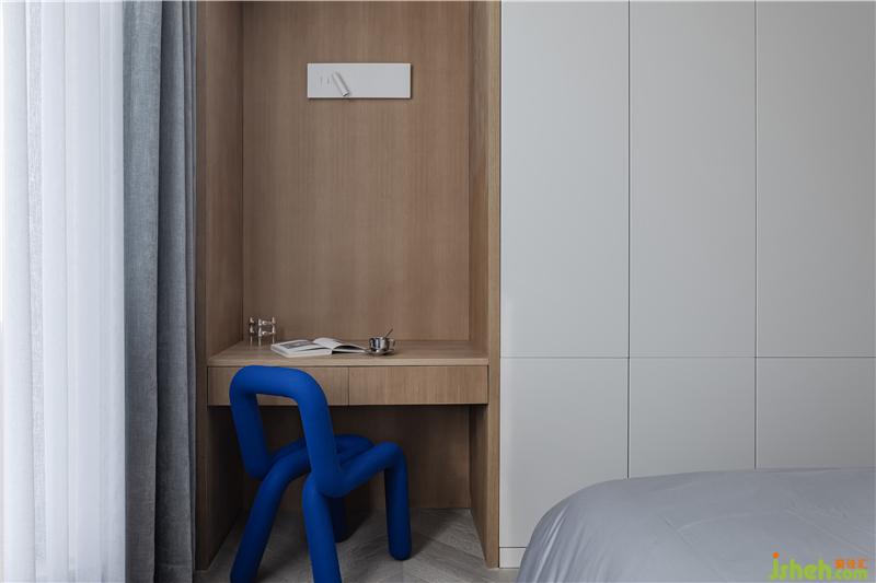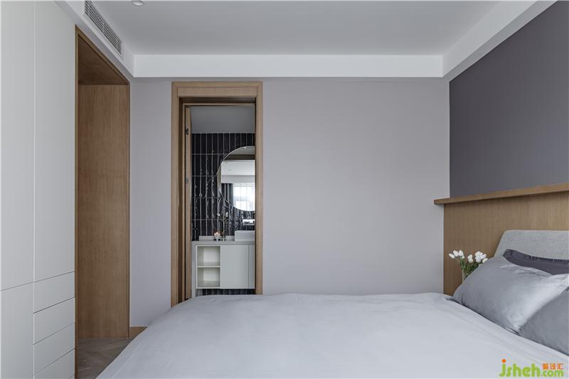 主臥在材質(zhì)以及色彩上呼應(yīng)整體,大量柜體解決日常所需儲(chǔ)物功能。