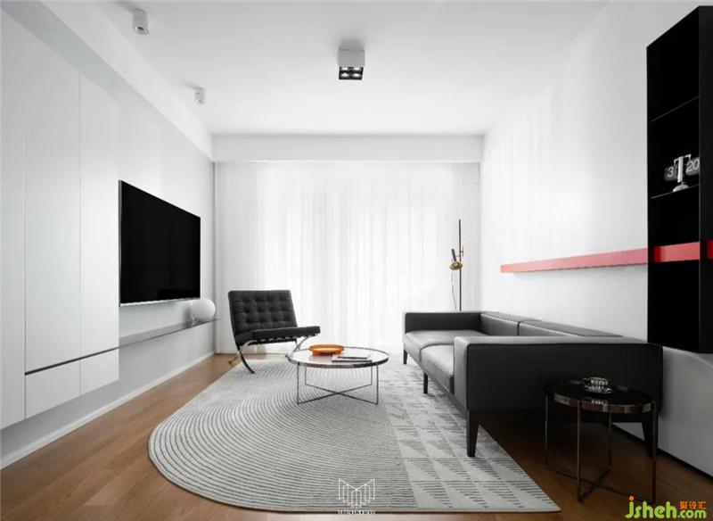 ● 增加電視墻柜體,定制簡潔的鋼板電視柜。
