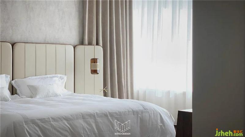 房間按照家庭成員的審美趣味設(shè)置了不同的主題。主臥選擇了暖白色,米黃色和青灰色,搭配大量胡桃木和少許黃銅,營(yíng)造了一種溫潤(rùn)又剛毅的理想氣質(zhì)。