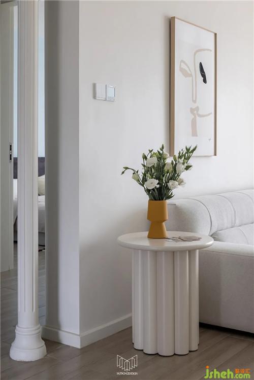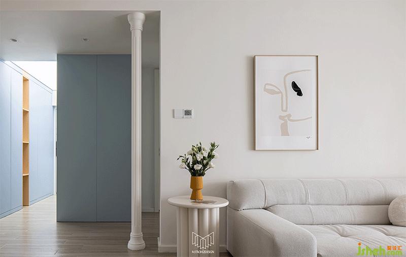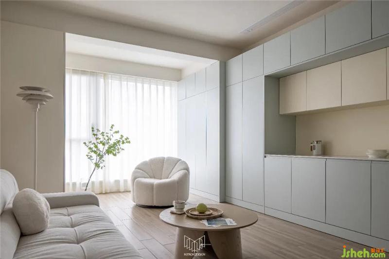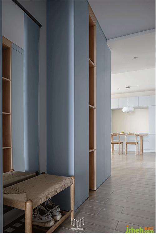 進門過道左右兩側(cè)布置大量鞋柜,完全可以滿足日常換鞋的需求,而且也可儲藏一些換季的鞋。進入門廳后,南京裝修設計在衛(wèi)生間門口布置實用性衣柜,可以便于日?;丶腋?,不用再放椅子上,顯得凌亂。