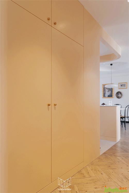 將西邊房間門口墻體稍作改動(dòng),南北墻體預(yù)留定制柜體位置,窗戶下方做地柜,南京室內(nèi)設(shè)計(jì)師原門洞擴(kuò)大,定制雙開鐵藝玻璃門,讓更多采光進(jìn)入過道。