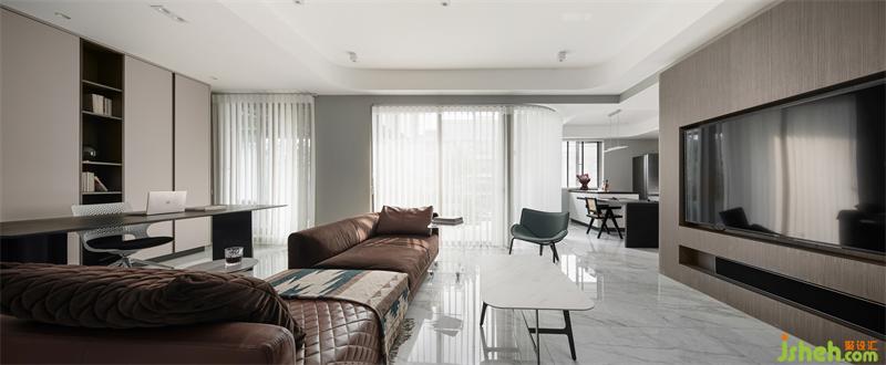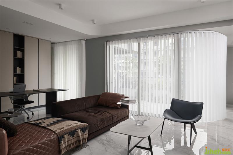 豎百葉代替?zhèn)鹘y(tǒng)窗簾,增加現(xiàn)代感,并隨時間映射出不同的光影