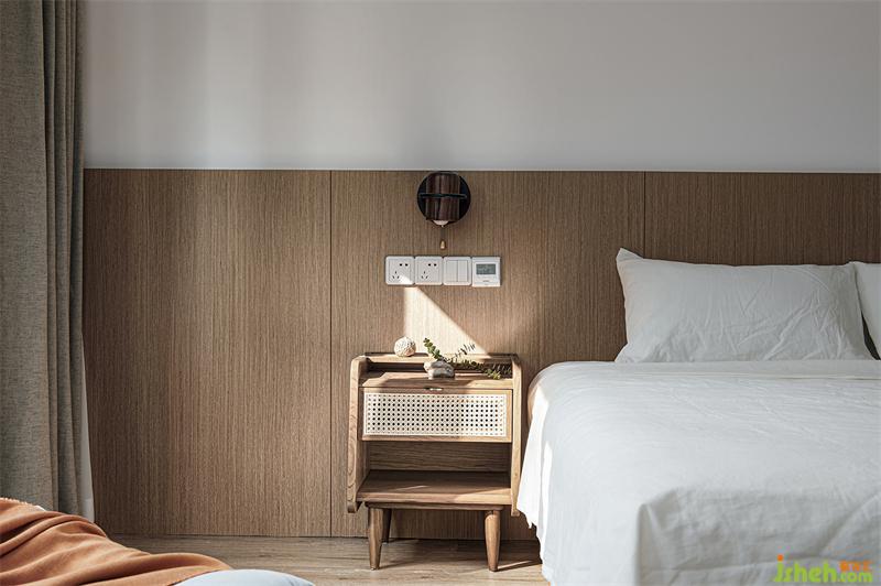 主臥床頭面板選用溫暖色調(diào)的原木色,圓弧收邊的小圓腳床頭柜,使整個(gè)空間的線條柔和感放大,陽(yáng)光的照射釋放了空間活力。滿足了他們?cè)缙鸫策呴喿x的習(xí)慣。