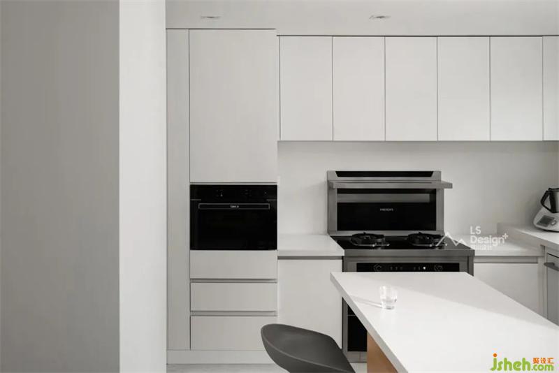 餐廚空間是將原有的次臥打開,生活陽臺(tái)外移,形成方正開闊的餐廚空間。色調(diào)極其簡(jiǎn)潔,素雅的線條,摒棄一切多余,營(yíng)造出日日是好日的安逸生活。