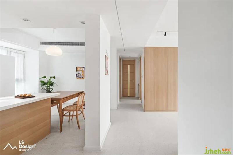 島臺(tái)與餐桌高度高低構(gòu)成,白色巖板與溫暖木制家具的結(jié)合,讓業(yè)主舒適切身沉浸于烹飪與用餐的美好時(shí)光。