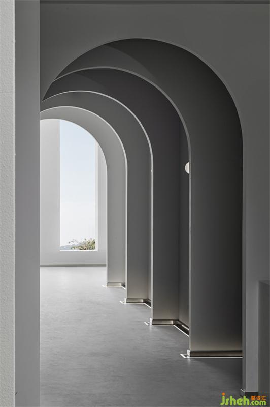 休閑空間在窄長(zhǎng)的過道空間的對(duì)比下更加寬敞