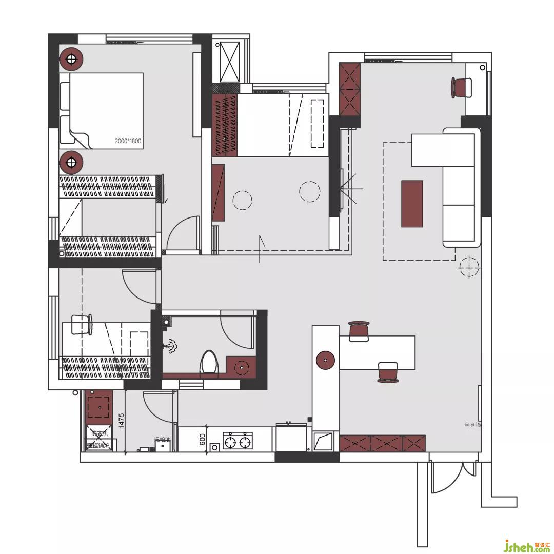此戶型格局方正,對應功能分區(qū)都合理