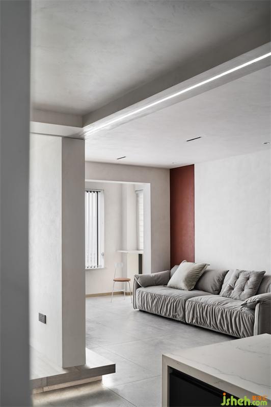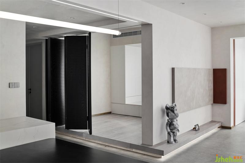 與客廳墻面、柜體板面、臥室背景、餐廳餐椅隔景呼應