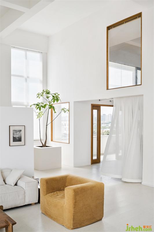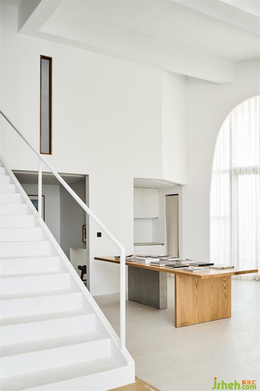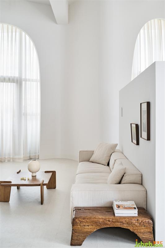 順從建筑的原生形態(tài),以新生的由于常規(guī)改造會(huì)面臨面積浪費(fèi)、造價(jià)高、工期長(zhǎng),同時(shí)還暗藏安全隱患等情況,設(shè)計(jì)師周子鑒決定采用順應(yīng)建筑設(shè)計(jì)的方法,用內(nèi)弧線柔化尖角,將高方窗改為高拱門,內(nèi)嵌電動(dòng)窗簾,在微風(fēng)與陽(yáng)光的互動(dòng)中,增加空間的靈動(dòng)感。姿態(tài)回應(yīng)人們對(duì)當(dāng)代空間的訴求。