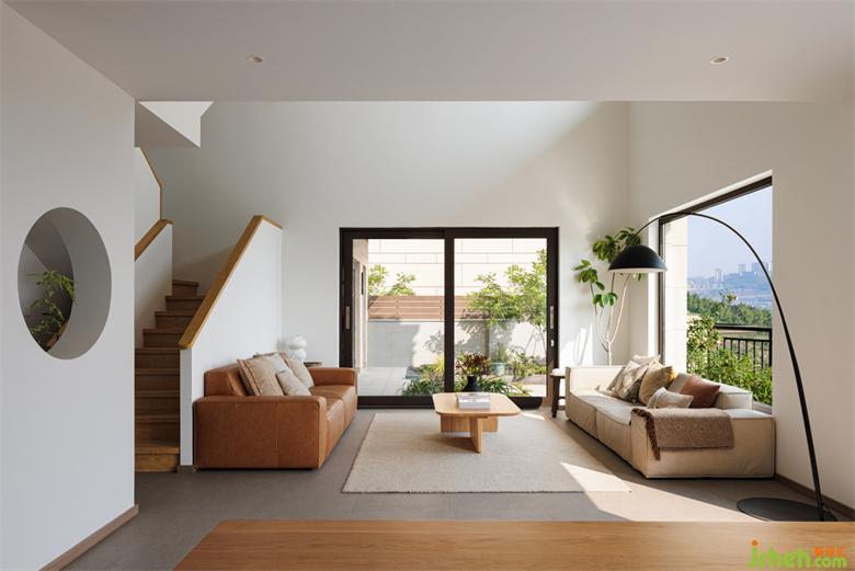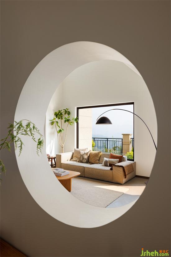 本案為重慶江岸別墅,坐擁極佳視野;重慶江岸別墅裝飾為更加貼合業(yè)主【外在樸素自然,內(nèi)心豐富淡然】的生活態(tài)度,設(shè)計(jì)師周子鑒利用大面積開(kāi)窗引入自然景觀,以簡(jiǎn)單留白營(yíng)造自然氛圍;于室內(nèi),設(shè)計(jì)考慮動(dòng)線的便利以及居者的舒適性感受,通過(guò)挑空、圓洞、弧形、框景等設(shè)計(jì)手法勾勒出“園林中一步一景”的清雋淡雅,淺橡木與白色的貫穿搭配,讓久居城市的人感受深度的園林賞玩感:入眼的山水,花園,隨處可見(jiàn)的綠植,方圓之中,結(jié)為一體,又各具風(fēng)韻。