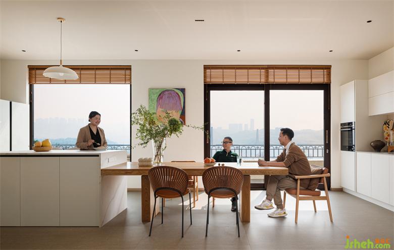 家從來(lái)不是一個(gè)范式,人在其中發(fā)揮著重要作用。重慶江岸別墅裝飾當(dāng)空間被使用,被賦予情緒,被人輸入日常生活氣息,在漫長(zhǎng)且平凡的時(shí)間中成長(zhǎng),它便形成【家】。正如設(shè)計(jì)師周子鑒所總結(jié),“這套作品最大的亮點(diǎn),不是我的設(shè)計(jì),不是任何裝飾或軟裝,而是這個(gè)‘家’里的人”。設(shè)計(jì)將一切交給景觀、天氣和人,以場(chǎng)景鏈接家庭成員的互動(dòng),還原生活本真,讓居者輕松而無(wú)負(fù)擔(dān)的享有它帶來(lái)的幸福、愉悅。